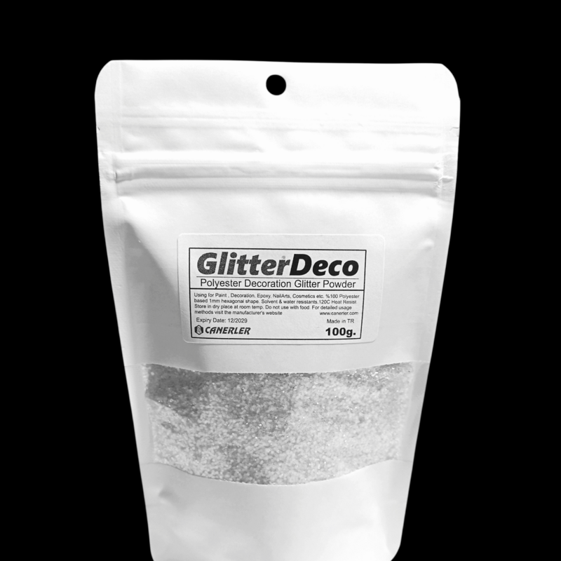 Özellik ve Açıklamalar:    Kullanılabileceği baskı şablonu 25 mesh olabilir. Daha çok serpme yöntemiyle kullanımlarda tercih edilen, görünür tanecikli parlak glitterdir. Gelinlik ve abiye kumaşlarda , Dekorasyon, süsleme, mermerit ve tekstil sektörlerinde kullanıma uygundur.